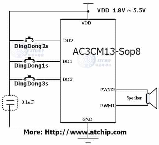 AC3CM12语音门铃IC芯片接线图PWM直推喇叭
